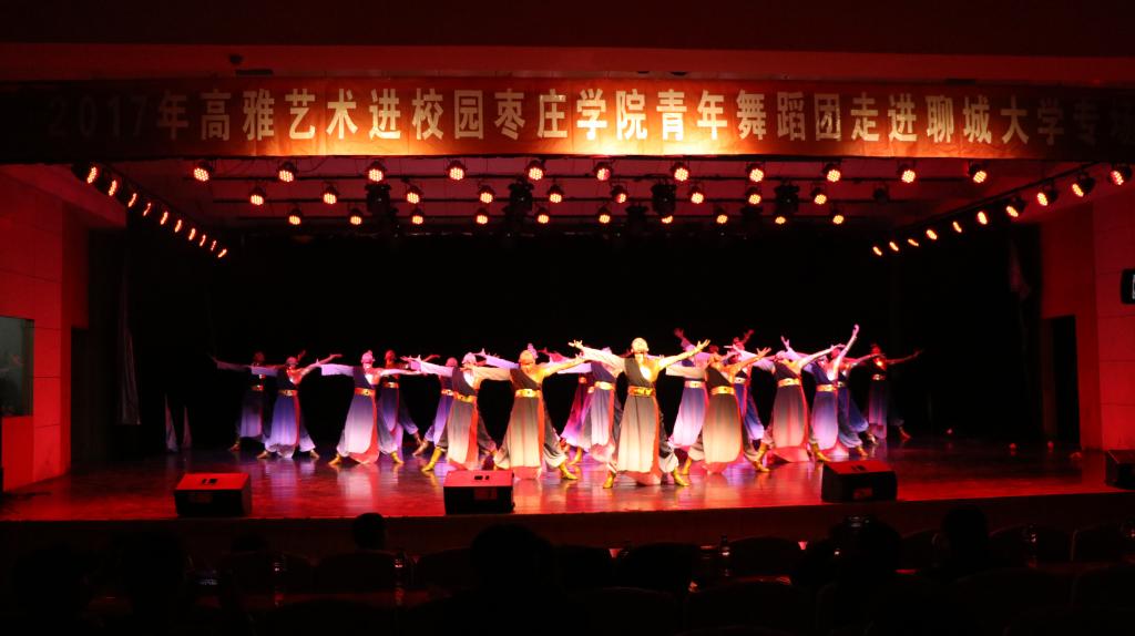 为贯彻落实国家“进一步繁荣高雅艺术,丰富校园文化,提高学生综合素质”的要求。11月24日下午,在jdb电子游戏官方网站院长李永、副院长郑发奋和舞蹈教研室赵鑫主任等各位老师的带领下,作为回访,jdb电子游戏官方网站青年舞蹈团在聊城大学举行了高雅艺术进校园专场演出,为聊城大学的师生们带来了一场唯美的视觉盛宴。