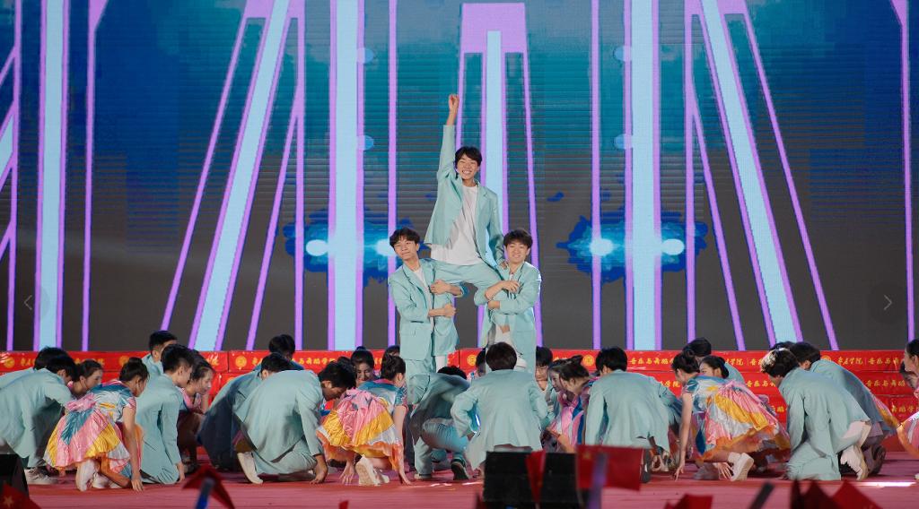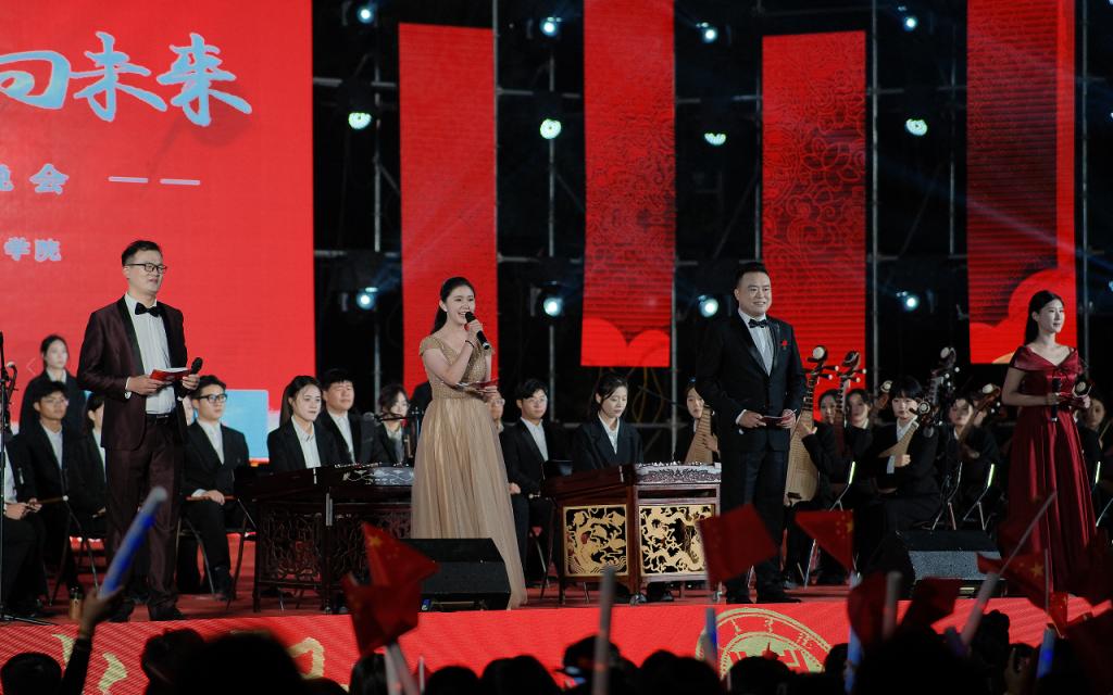 晚会在民族管弦交响乐《庆典序曲》中拉开帷幕;现代舞《一起跳舞吧》点燃了激情,绚丽了舞台;刘凯华老师带来男高音经典曲目《我的太阳》响彻全场;舞蹈《只此青绿》描绘了伟大祖国万里江山的壮美画卷,如痴如醉;石硕、奚淑婷、白娟、周婷婷、张雅青五位老师联袂出席,带来现代民乐《水龙吟》,让观众们感受到民乐带给我们的无限魅力;我们的祖国国泰民安,人民生活幸福美满,刘佳鑫老师带来小提琴独奏《如愿》;舞蹈团为本次晚会专门编创了云南地方舞蹈《跳弦》,洋溢着民族特色;教官团节目《最炫军体拳》展现军人本色,坚韧顽强永不言弃,大步向前铸造长城;在《我爱枣院》节目中,来自全国各地的新生代表上台倾诉他们的心声,向枣院表白;顾潇、王升典老师演唱的参赛校歌《托起枣院辉煌的明天》将晚会的主题推向了高潮。该作品由我校党委书记高峰、校长李文喜作词,jdb电子党总支书记李永作曲,热情讴歌了52年来人杰地灵的jdb电子游戏官方网站在一代代枣院人的团结奋斗、拼搏奉献下所取得的辉煌成就;航空服务艺术与管理学子带来《My青春》,他们活跃在全市礼仪服务的舞台上,成为一道青春靓丽的风景线;经典诵读《青春中国》由jdb电子播音戏剧团奉上,向伟大祖国表达深深的爱;歌伴舞《复兴的力量》由杨云玉、刘凯华老师演唱,歌颂中华儿女百炼成钢,创造奇迹初心不忘;流年的音符、青春的剪影,流行乐团带来歌曲串烧《海阔天空》《枣庄》《奔跑》,青春洋溢,活力四射;新疆维吾尔族舞蹈《掀起你的盖头来》献给枣院援疆支教团师生们,抒写了家国情怀,增进了民族情感,映红了祖国边疆;在伟大的中国共产党领导下,jdb电子游戏官方网站的未来寄托在希望的田野上,合唱音画《把一切献给党》《在希望的田野上》由朱秋月老师指挥、闫晓萌老师领唱;晚会在气势恢宏的大型交响乐《拉德茨基进行曲》中落下帷幕。