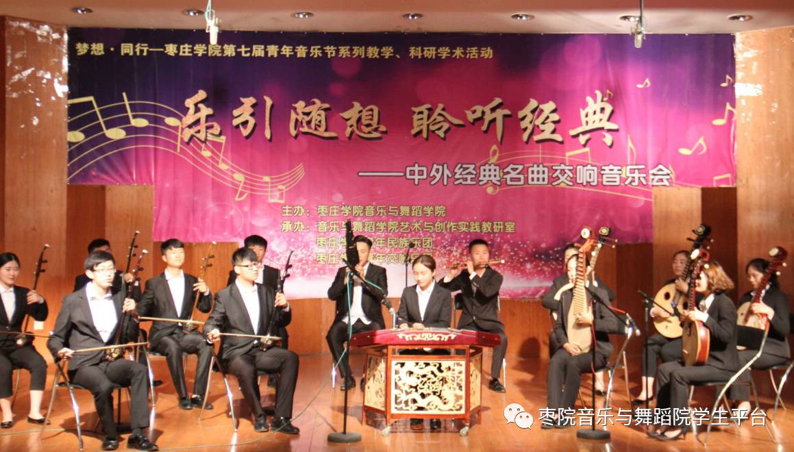 民族室内乐团成立于2006年,隶属于枣庄学院青年爱乐乐团,现有团员30余人,指导教师是艺术实践教研室石硕老师和奚淑婷老师。乐团以弘扬中国传统民族音乐文化为宗旨,收集和整理了一大批优秀的传统和民间音乐,并搬上了舞台。乐团曾在2017年山东省教育厅主办的第五届大学生艺术展演中获民乐组一等奖一项,二等奖一项;2018年初,参演由中国音乐家协会主办的国际民族音乐季演出,演奏乐曲《苗岭的早晨》、《欢乐歌》,获得了协会专家、学者的广泛认可。乐团成立以来参加了各级、各类校内外演出活动,获得了业内专家的普遍好评,为学校赢得了荣誉。