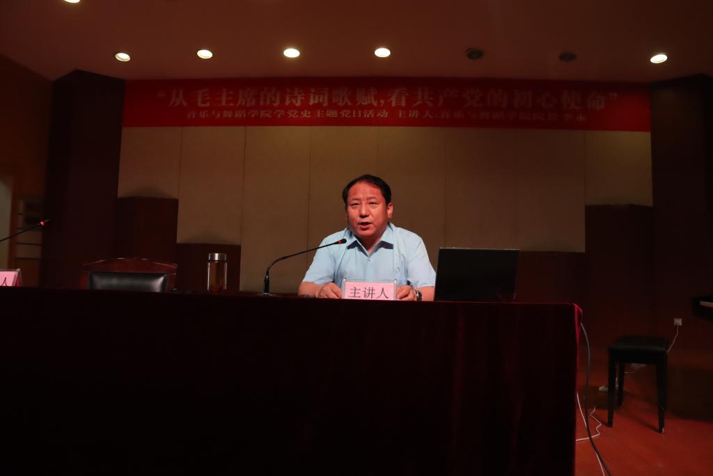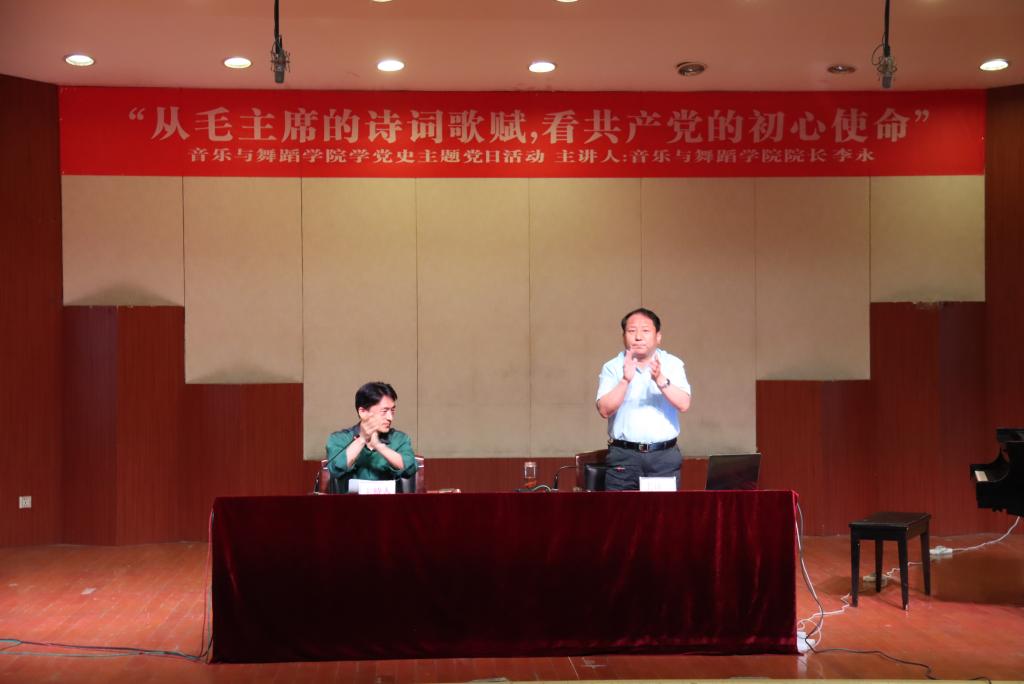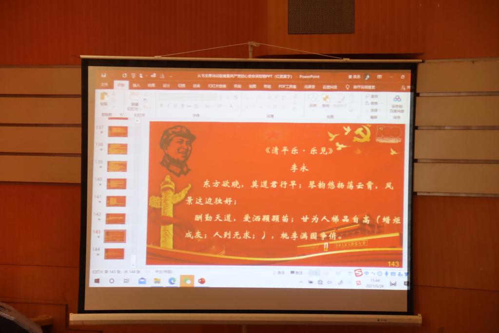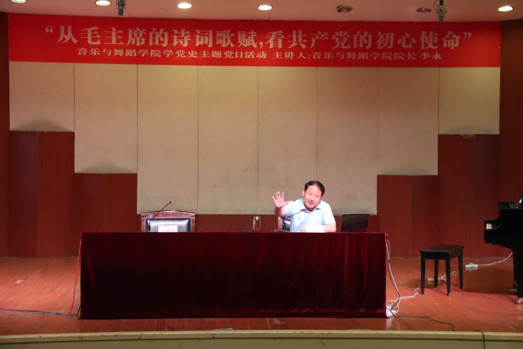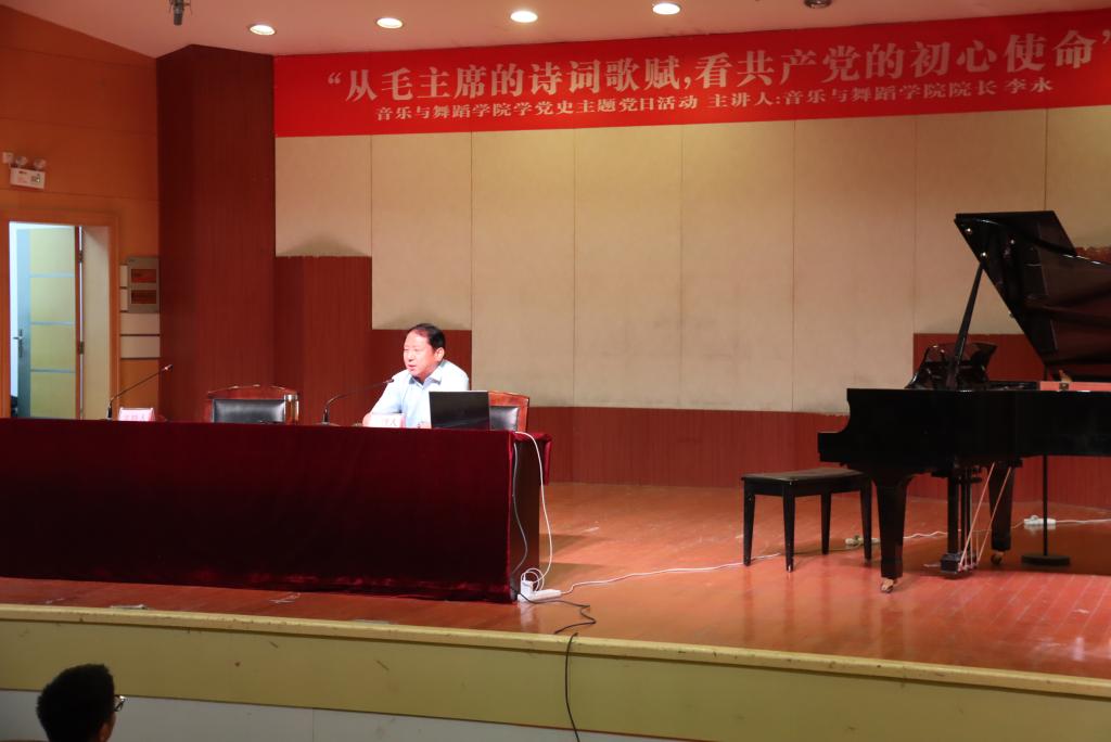 为响应校党委党史学习教育活动的号召,按照校党委的工作部署,2021年5月26日下午,jdb电子游戏官方网站党总支在音乐厅开展主题党课讲授活动,授课人为jdb电子院长李永教授,党课讲授题目为《从毛主席诗词歌赋,看共产党初心使命》,jdb电子全体师生党员、入党积极分子、党外人士,全体学生干部二百余人参加了本次党课,党课由党总支书记高原同志主持。