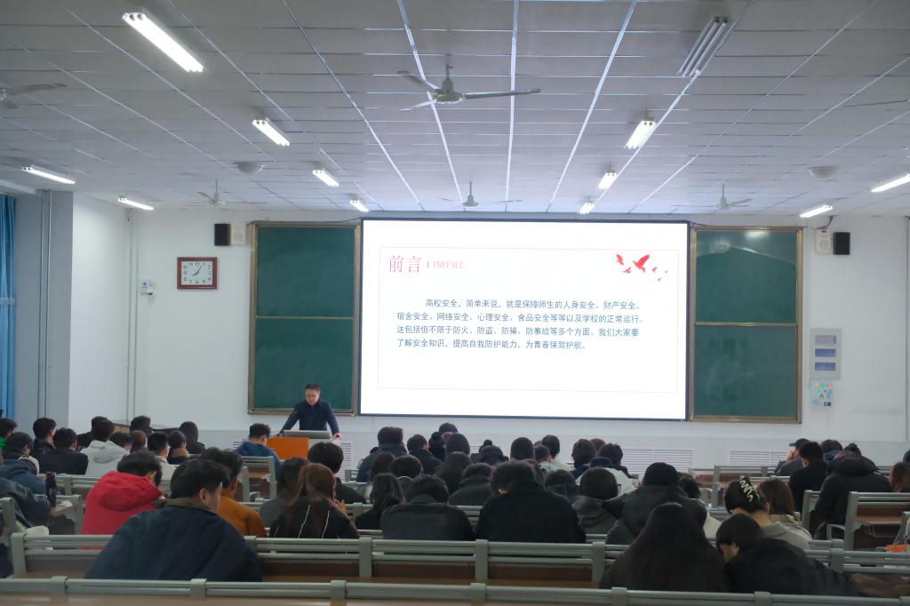 为了增强大学生的安全意识和自我保护能力,有效预防和减少校园安全事故的发生,3月7日晚,jdb电子游戏官方网站联合校保卫处在增信楼112教室举办校园安全教育宣讲活动,jdb电子百余名学生干部参加,本次宣讲会由学院党总支副书记褚衍彪主持。