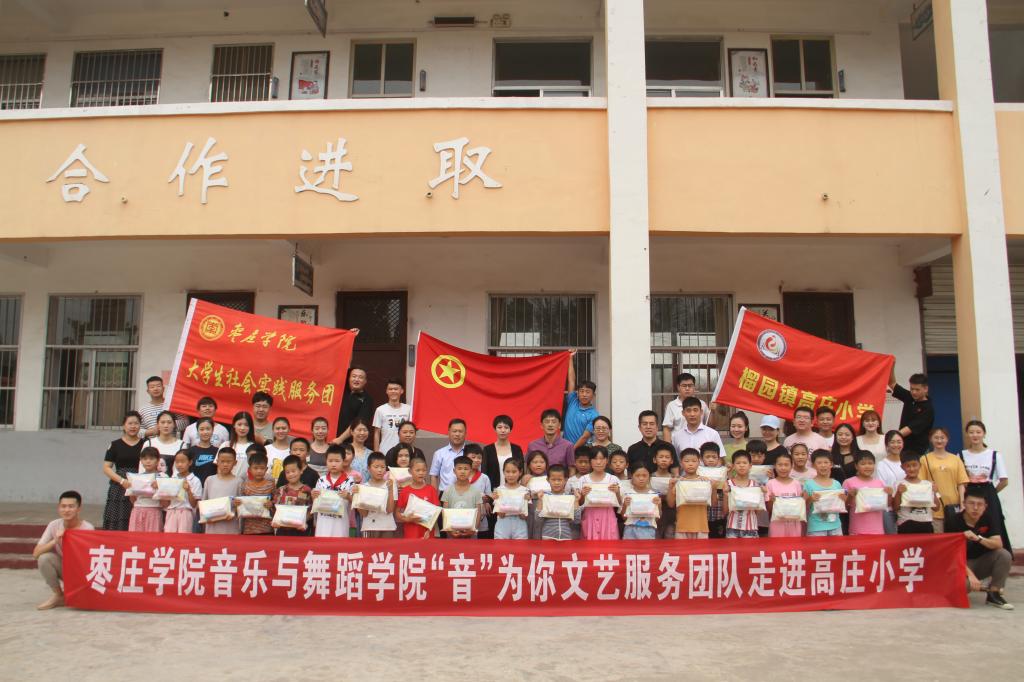 2019年7月4日,版权所有 jdb电子游戏(中国区)官方网站 “音”为你文艺服务团20余人,在党总支书记高原、党总支副书记华莹、 团总支书记申晨和指导老师带领下,来到了枣庄市峄城区榴园镇高庄小学。共青团峄城区委书记付晓娟,榴园镇党委委员、组织委员李振海,榴园镇团委书记张洋也一同前往。