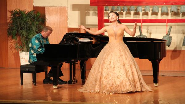 音乐会曲目种类丰富多彩:嘹亮的民歌,宏伟的诗词,还有动情的歌剧,让观众眼前一亮。张敏老师演唱了中国创作歌曲《我爱这土地》曲式细腻、淳朴柔美、是一首在现代诗歌史上广泛传诵的抒情名篇,以一只鸟生死眷恋土地作比,形象抒发了深沉而真挚的爱国情感。杨云玉、顾潇、黄庆鹏、王倩、乔相钧、吕建文、孟盼盼几位老师先后演唱了意大利歌剧选曲《你可知道,好妈妈》、《挂满了柔软幕帐》、《我亲爱的爸爸》、《你再不要去做情郎》、《真情永存》、《星光灿烂》、《四周是多么寂静》和艺术歌曲《最后的歌》曲调抒情圆润、流利动听、纯朴细致、感情真挚,在教师们声情并茂的演唱中深深打动了在场的听众,赢得了大家热烈的掌声,最后,音乐会在王升典老师演唱的民族歌曲《喀什噶尔女郎》和《再见了大别山》中落下帷幕。