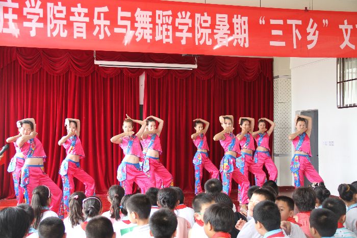 揭牌仪式结束后,心理与教育科学学院的师生针对陶庄镇留守儿童心理健康情况进行了问卷调查,与孩子们深入交谈,了解留守儿童对父母外出务工的看法。根据调查显示的留守儿童心理倾向性,随后做了心理团体辅导,一系列心理游戏的开展,让孩子在活动、游戏中体验,在体验中感悟,在感悟中升华成长,以更加积极的心态去面对学习和生活,促进了孩子们的身心健康发展,较好的解决了留守儿童的一些心理问题。整个心理辅导活动在大学生志愿者和留守儿童合唱的《隐形的翅膀》歌曲中结束。jdb电子游戏官方网站的师生以“歌声与微笑”为主题,以歌舞表演为主线,为中心小学的师生们表演了一场精彩的文艺演出。音乐响起,一段激情奔放、耳熟能详的《最炫民族风》拉开了文艺汇演的序幕。汇演节目内容丰富、形式新颖,小学生们沉浸在精彩的节目中,忘情鼓掌,最后汇演在全体志愿者合唱《歌声与微笑》的歌声中落下帷幕。