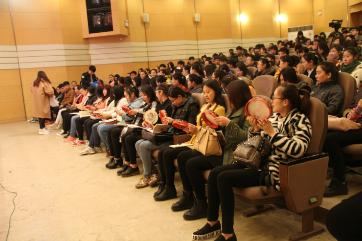 学生在练习摇铃