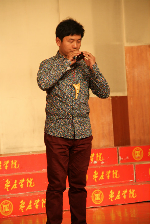 郑龙老师在吹奏陶笛