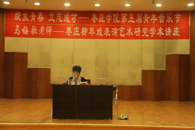 2015年5月27日下午,山东省著名戏曲表演艺术家、枣庄市市中区文化局马梅歌女士应邀在我校音乐厅举办题为《枣庄柳琴戏表演艺术研究》的学术报告,此次活动为jdb电子游戏官方网站第五届青年音乐节系列讲座之一,jdb电子游戏官方网站艺术实践教研室主任马体亚老师主持讲座,音乐学院师生近300余人聆听了报告。