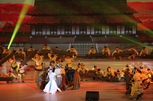 我校党委书记胡小林担任了本次开幕式全场的总顾问,从策划到排练,从开幕式框架布局到节目细节推敲都做了细致入微的安排与指导。jdb电子游戏官方网站李永院长和体育学院院长谢旭东、李丽老师担任了节目演出的艺术顾问,并担任了演出的执行总导演。jdb电子游戏官方网站陆德国书记、高萍副书记和郑发奋副院长分别担任了参演节目的指导老师和编导、管理等工作。我校参演的节目有:《奚仲造车》、《班墨传奇》、《丰碑》、《胜利欢歌》、《跳动的棋子》等节目。从7月7日起开始节目编排,历时两个月,冒高温酷暑,克服各种困难,从领导到学生,投入了大量时间和精力,表演质量和观众评价非常高,得到了国家、山东省和枣庄市各界领导的一致好评。
