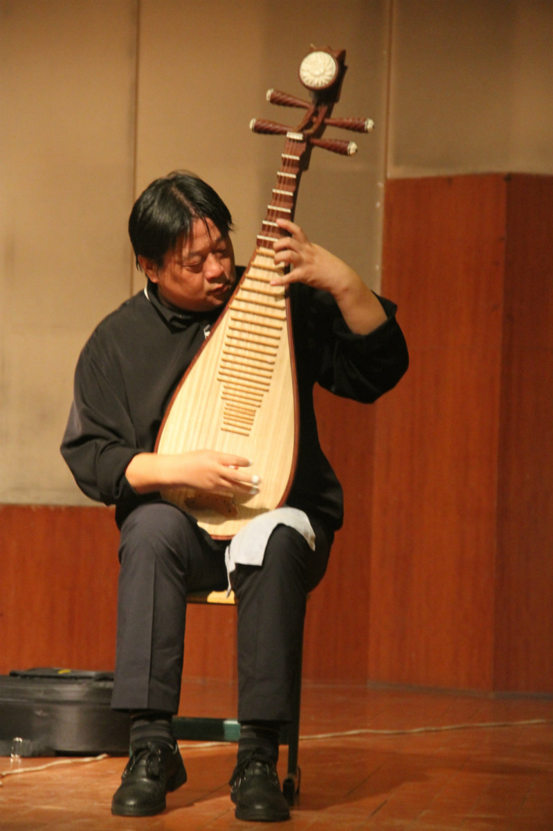 王晓东教授介绍了琵琶的基本知识和不同时期琵琶的发展情况,并演奏了沉闷悲壮的《霸王卸甲》,几线丝弦偏能奏出一片荡气回肠。特别是杨和平教授与王晓东教授在讲座中的一捧一逗,更是点燃了现场的气氛。期间,王晓东演奏了《春江花月夜》、《霸王卸甲》等作品,还演绎了自己改编的《送我一支玫瑰花》,最后,王晓东教授与jdb电子贾波老师共同合作演绎了作曲家久石让的《天空之城》,为本次讲座画上了完美的句点。