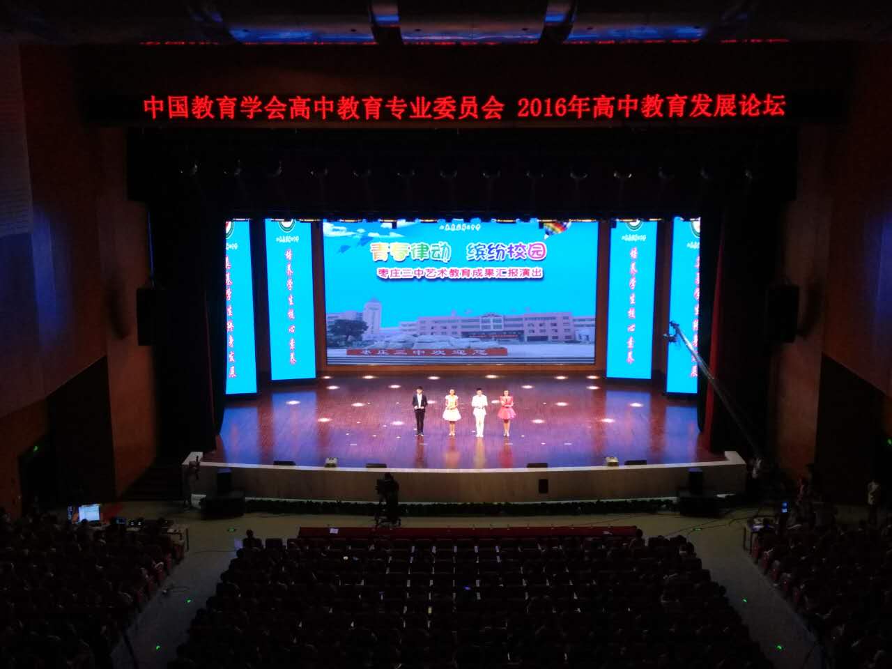 2016年9月23日,中国教育学会高中教育专业委员会2016年高中教育发展论坛在枣庄市实验高中举行。来自全国的教育专家学者和全国重点高中校长就“核心素养与高中教育的变革”这一主题进行了探讨和交流。国家教育咨询委员会委员、国家总督学顾问、联合国教科文组织协会世界联合会名誉主席陶西平,国家督学、中国教育学会副会长、教育部课程改革专家工作委员会副主任、浙江省教育学会会长张绪培,全国政协常委、中国教育学会高中教育专业委员会理事长、北京四中校长刘长铭,枣庄市政协副主席、枣庄市委党校党委书记杨建国,枣庄市教育局副局长冯仰军,山东省高级中学协会副会长、青岛二中校长孙先亮,枣庄市第三中学校长于卫东,枣庄市第三中学党委书记韩建超及来自中国教育学会高中教育专业委员会、全国中学教育工作者等参加了本次活动。论坛结束后是jdb电子承担的大型文艺演出。舞蹈《乘着知识的翅膀》表达了学生对知识的渴求紧扣论坛主题,舞蹈《举杯吧,朋友》唱出了我们对远道而来的专家学者的热烈欢迎,气势磅礴的大型交响乐演奏将整场晚会推向了高潮。得到了与会专家的称赞。