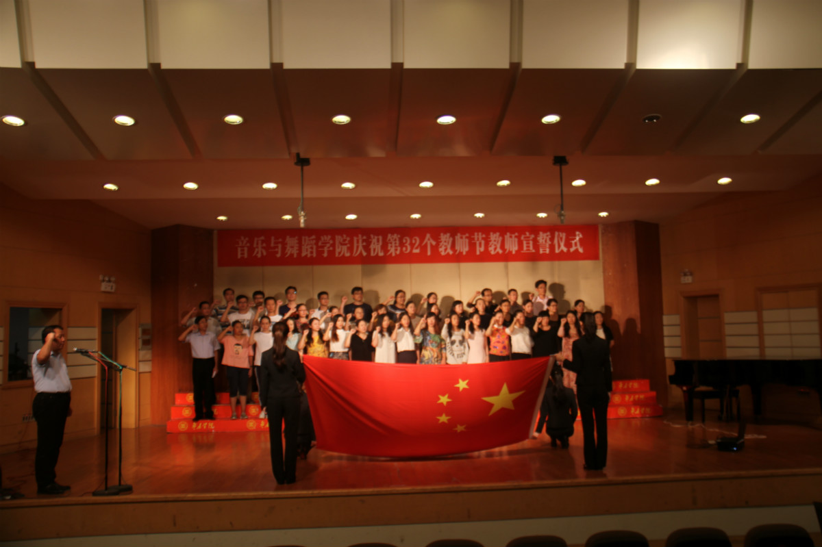 9月7日下午,jdb电子游戏官方网站在音乐厅举行庆祝第32个教师节教师宣誓仪式和教师座谈会。党总支书记陆德国通知主持了仪式。