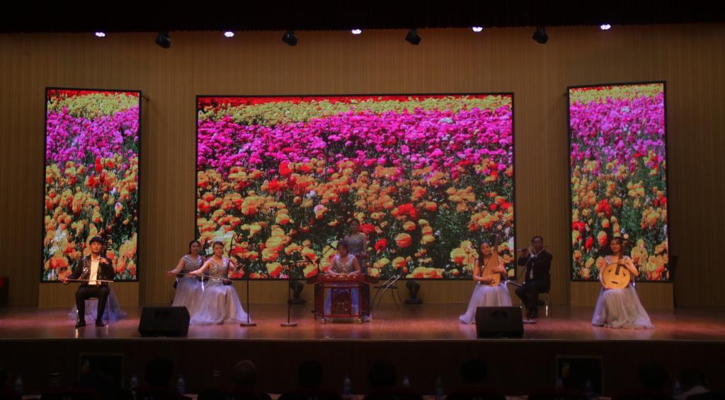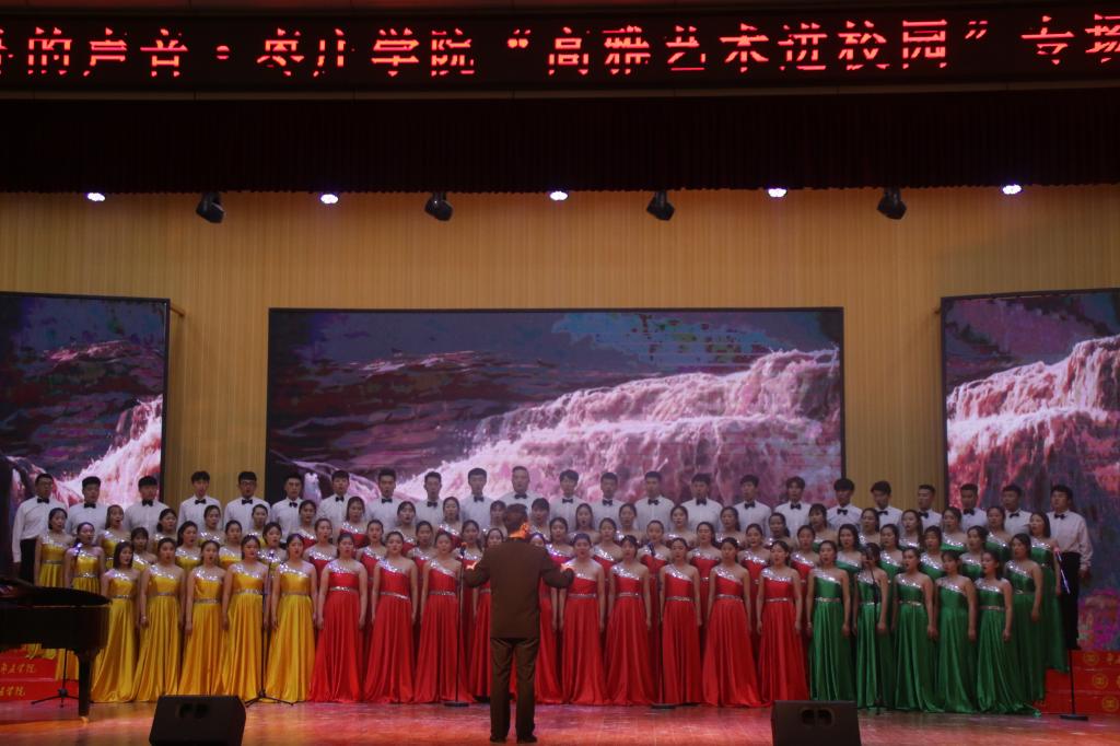 演出前,文化路小学总校长宋延江及版权所有 jdb电子游戏(中国区)官方网站党总支书记高原分别致辞,并举行了jdb电子游戏官方网站“教学实践基地”、“艺术实践基地”、“社会实践基地”揭牌仪式。随后伴随着欢快的节奏,跳动的音符,一曲《欢腾的校园》拉开活动的帷幕,点燃观众的心;jdb电子舞蹈团群舞《夜深沉》及邵晓环老师带领小学生表演的柳琴戏作品《回娘家》,都是以中国传统戏曲文化为创作精髓,其中柳琴戏也是第一批国家级非物质文化遗产项目,通过形、神、劲、律的呈现,展示了我国传统文化的博大精深和唯美气质;文化路小学的小合唱《落雨大》、歌曲串烧《童年》《沙漠骆驼》是童年的回忆,更是长大后的回忆,激情四射的演唱瞬间将现场气氛推向高潮,欢呼声不绝于耳;器乐合奏《苗岭的早晨》,清新、优美的旋律缓缓奏出,描绘一幅苗族山寨春意盎然的秀丽图景,加之欢快、热烈的节奏,刻画苗族人民开朗、愉悦的心情及对幸福生活的憧憬;jdb电子院长李永教授作曲、顾潇副教授演唱的《印象台儿庄》优美动听,受到了广大师生的一致好评;戈壁荒滩,黄沙漫天,男子蒙族群舞《戈壁沙丘》,将我们带到了蒙古草原,男子帅气洒脱的舞蹈动作将晚会气氛又一次推向高潮;合唱《怒吼吧黄河》、《渔歌子》,歌伴舞《在希望的田野上》带观众们领略激情,感受平静,感受农民发自心底的喜悦和农村的巨变,感慨祖国的日益强大;最后,在《拉德茨基进行曲》欢快的旋律中,本场演出圆满落下帷幕。