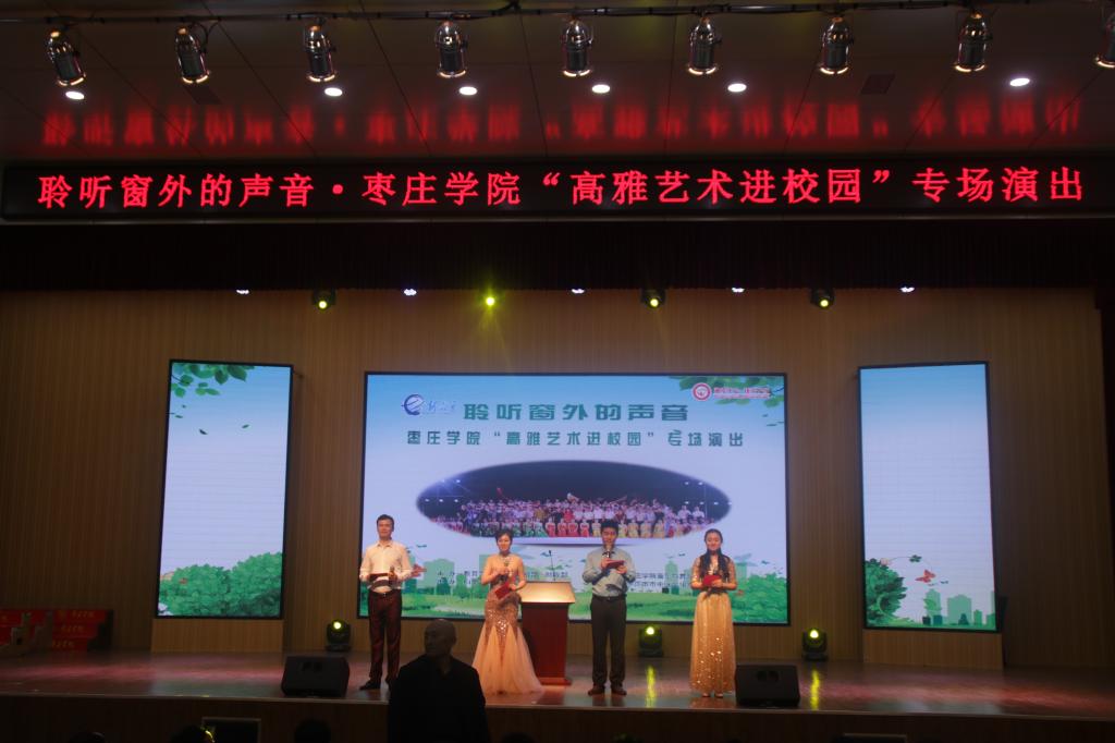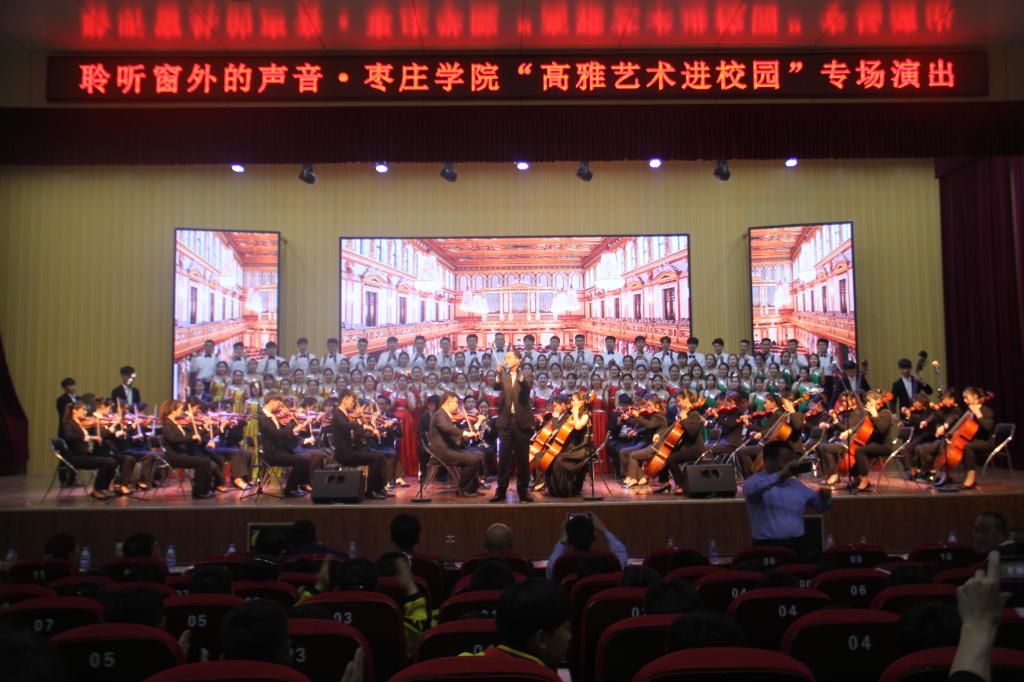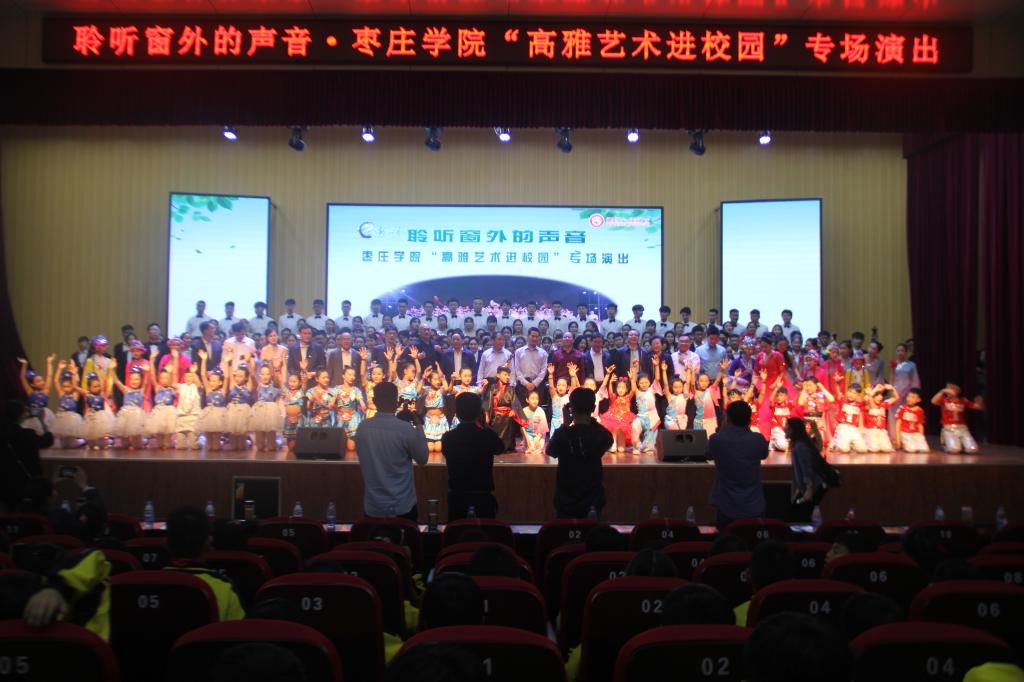 在喜迎祖国七十华诞的前夕,为贯彻党的十九大和习近平总书记系列重要讲话精神,落实《中共中央关于繁荣社会主义文艺的意见》和《国务院办公厅关于全面加强和改进学校美育工作的意见》,实现立德树人根本任务。2019年5月9日下午4点30分,由国家教育部、文化和旅游部、财政部主办,山东省教育厅、jdb电子游戏官方网站承办的高雅艺术进校园活动走进枣庄市市中区文化路小学。