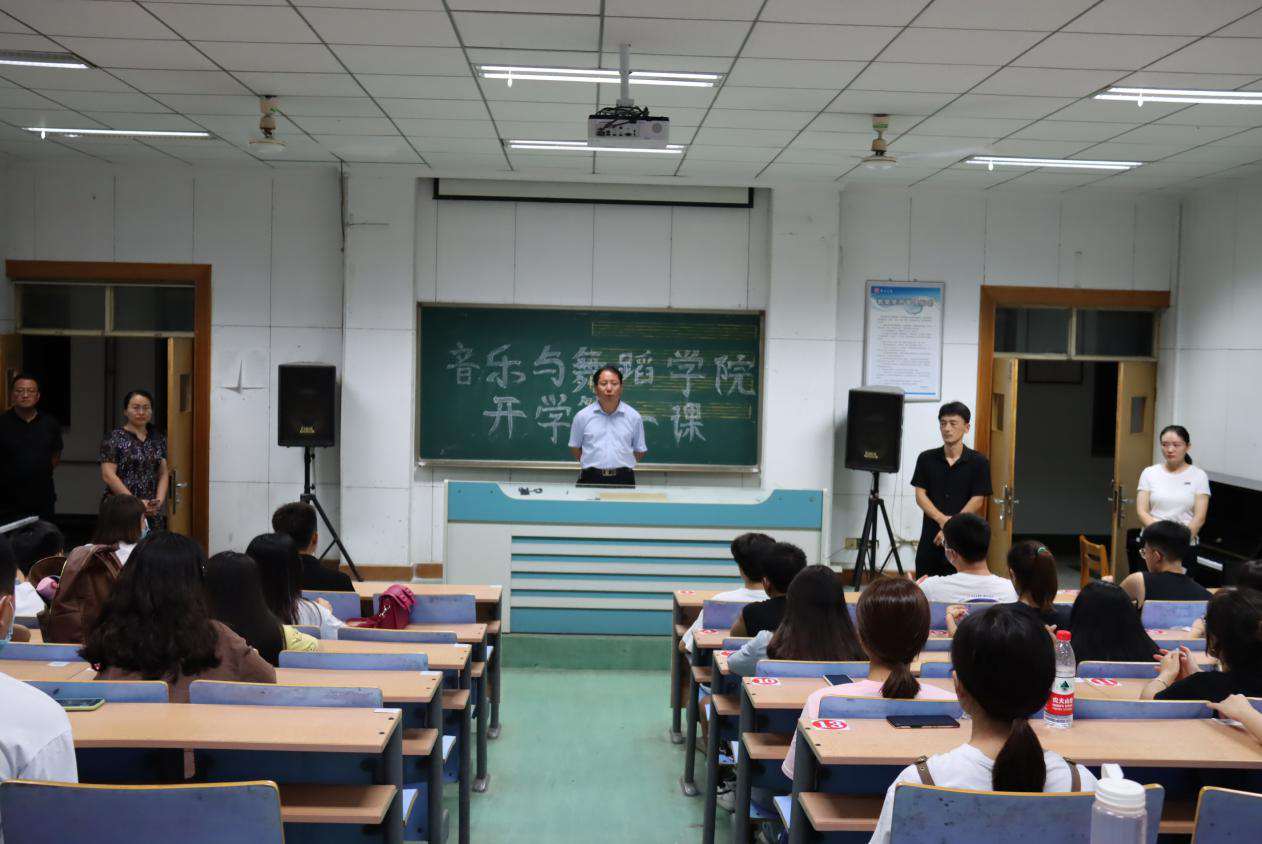 为迎接新学期的到来,8月30日晚7点,音乐与舞蹈学院在1060、1061教室举行2020年秋季学期“开学第一课”,院长李永、党总支书记高原、院党委副书记华莹和副院长郑发奋、全体辅导员及返校学生237名学生参加开课。