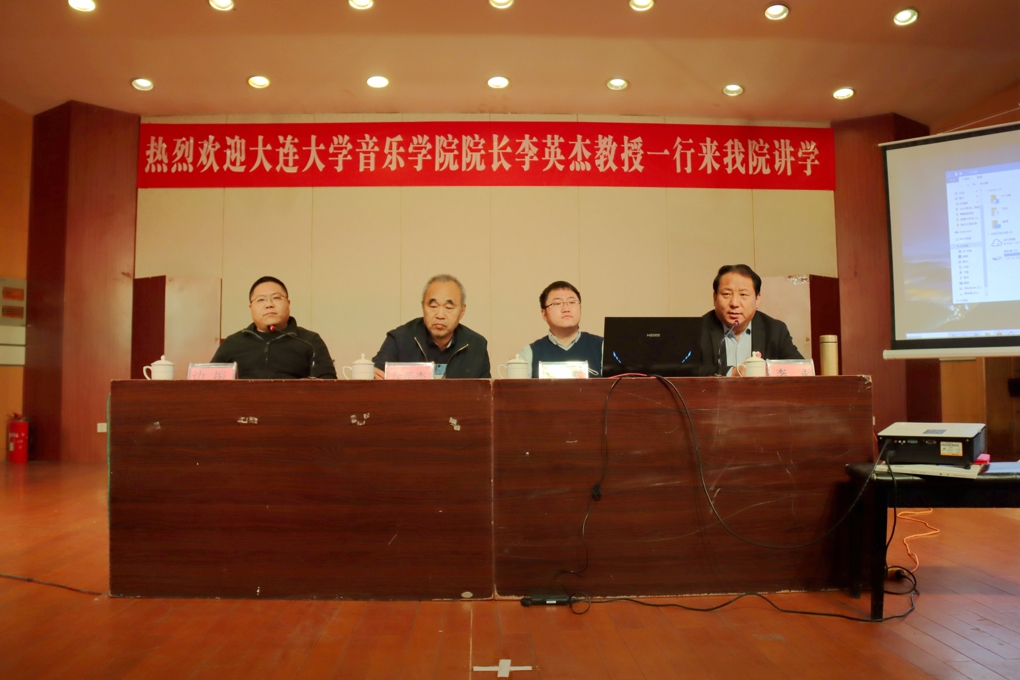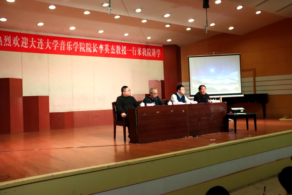 11月5日晚,第二届新时代中国卓越匠心文化论坛暨中国职业技术教育学会职业教育文化自信工作委员会成立大会特邀嘉宾、大连大学音乐学院院长、中国普通高校音乐联盟副主席、教育部艺术规划建设专家李英杰教授、大连大学国际教育中心招生办主任隋军等一行三人来jdb电子讲学。讲学活动在音乐厅举行,院长李永主持了本次讲学。学院党政领导、班主任辅导员、相关教师及优秀学生代表聆听了本次讲学。