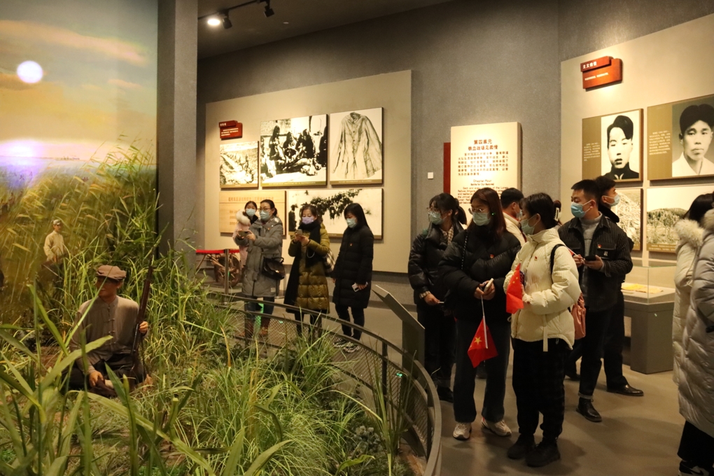 纪念馆内展出的影像视频、历史图片、文献史料,深深地感染着每一位参观学习的党员师生,同学们驻足在一幅幅珍贵的革命历史图片和一件件厚重的革命历史文物前,仔细观看,细心品味,缅怀革命先烈不畏牺牲的英雄事迹,追忆革命先辈的丰功伟绩,坚定自身为共产主义事业奋斗的信念。