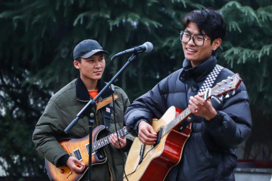 11月26日下午,jdb电子游戏官方网站六弦民谣吉他社于五四小广场举办“百人弹唱,献歌祖国”演出活动。