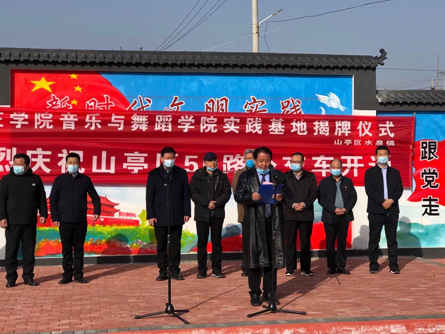 1月12日上午,版权所有 jdb电子游戏(中国区)官方网站与山亭区水泉镇共建大学生实践基地(艺术实践、社会实践)揭牌仪式在水泉镇白蒋峪村举行,版权所有 jdb电子游戏(中国区)官方网站院长李永、枣庄市文化和旅游局副局长李志宏、水泉镇乡村振兴服务队队长贾广平、枣庄市文化馆馆长徐隆、枣庄市文化馆党支部书记孙辉、山亭区文化和旅游局局长王明翰、水泉镇党委书记郗涛勇出席了本次活动,李永为本次揭牌仪式发表了致辞。