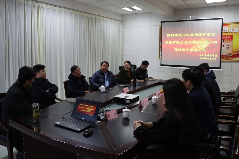 2020年12月31日下午,山东高校通用航空股份有限公司总裁林瑞爽、总经理高权、副总经理宗浩、教学总监侯晶、行政助理祝闻悦一行来jdb电子考察交流,副校长明清河接待了林瑞爽一行,教务处处长安涛、招生就业处处长周磊、鲁班应用技术研究院院长蒋秀英、jdb电子游戏官方网站院长李永参加了会议。