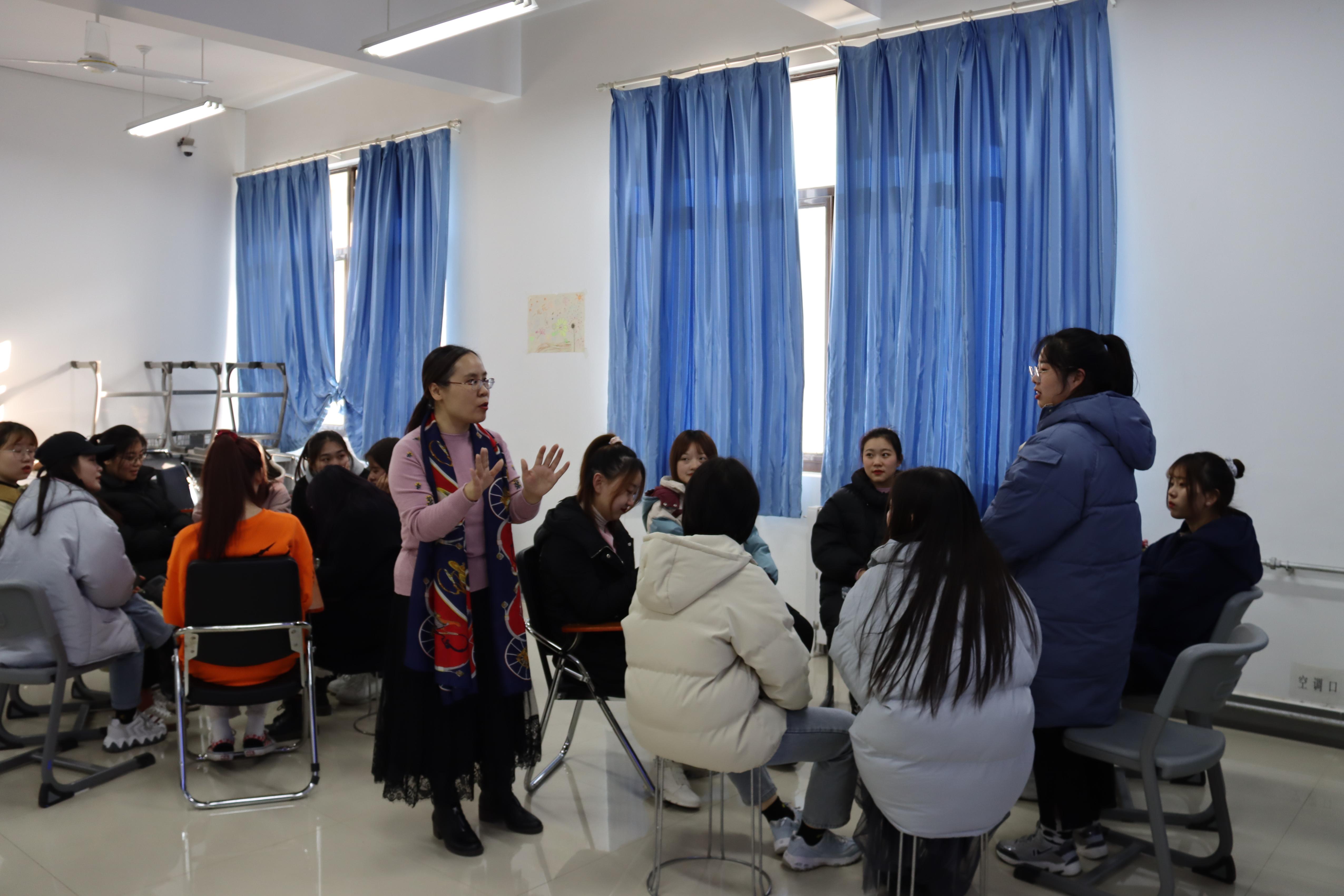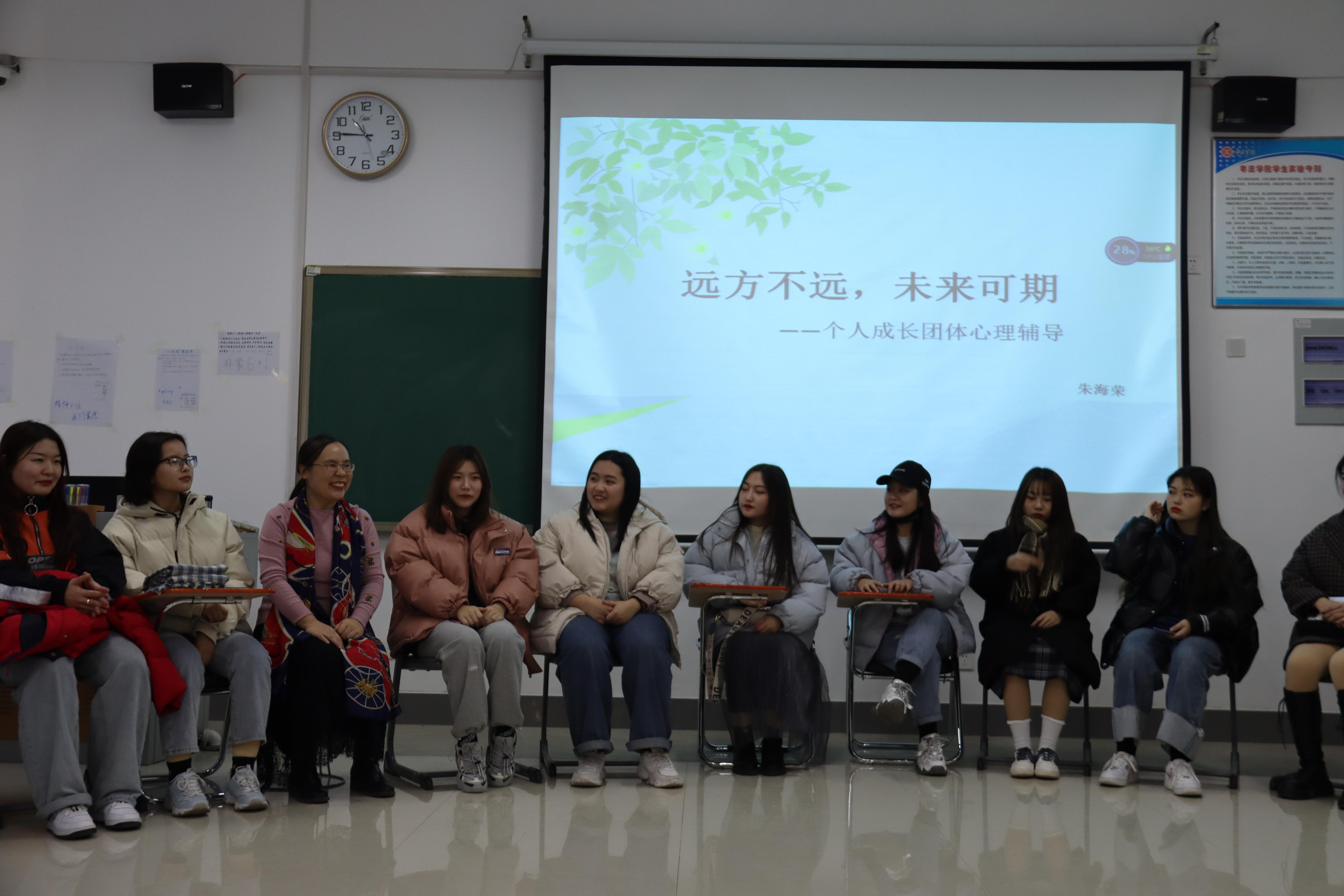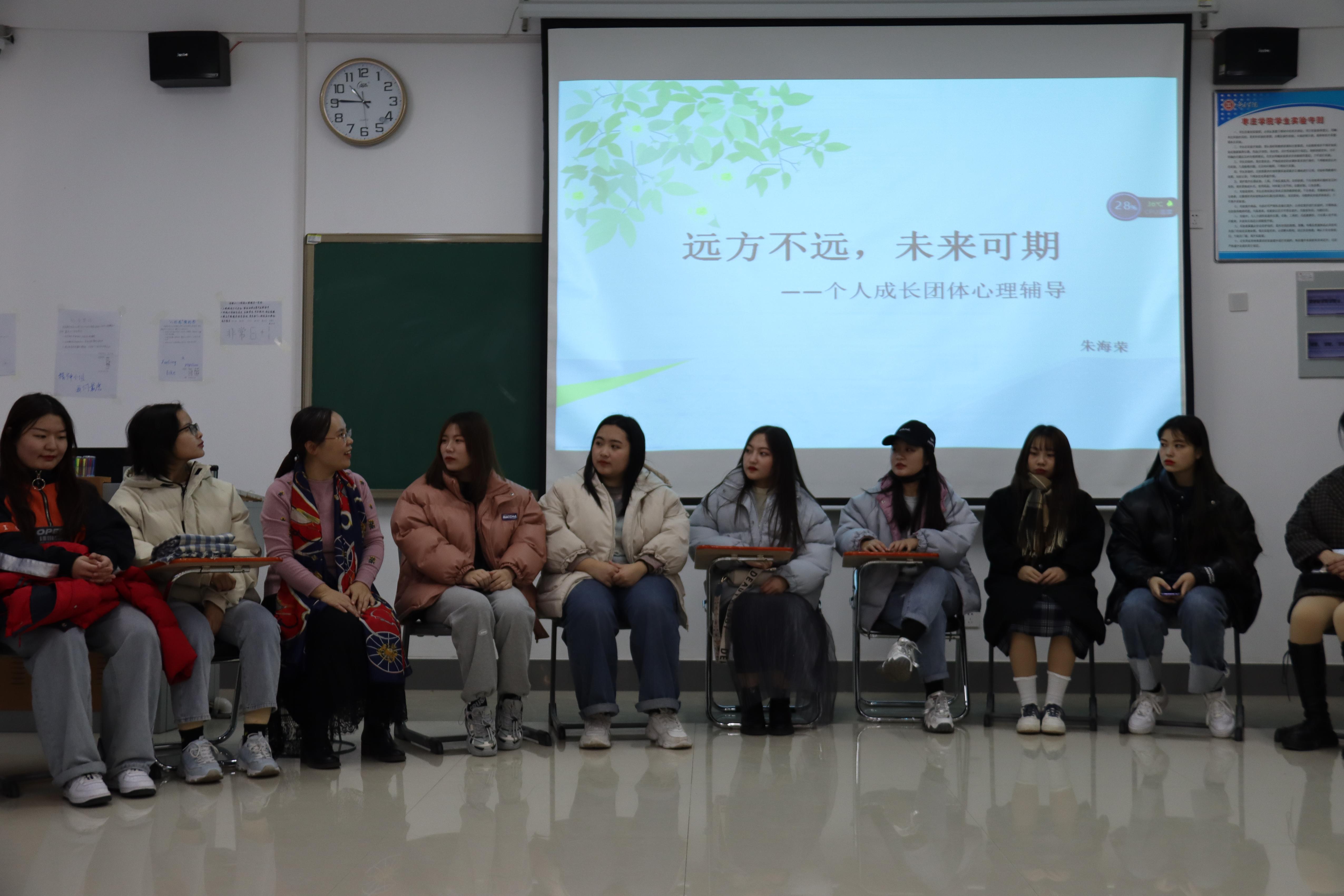 jdb电子游戏官方网站12月23号开展了“远方不远 未来可期”个人成长团体心理辅导。本次活动由心科院朱海荣老师主持,2020级音乐学本科班全体女生参加。