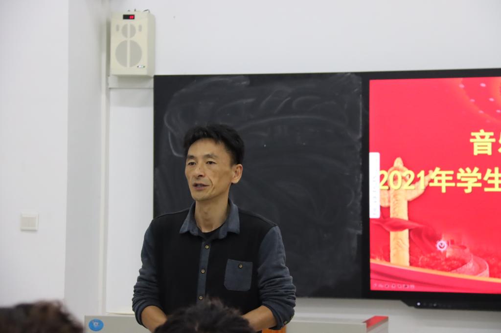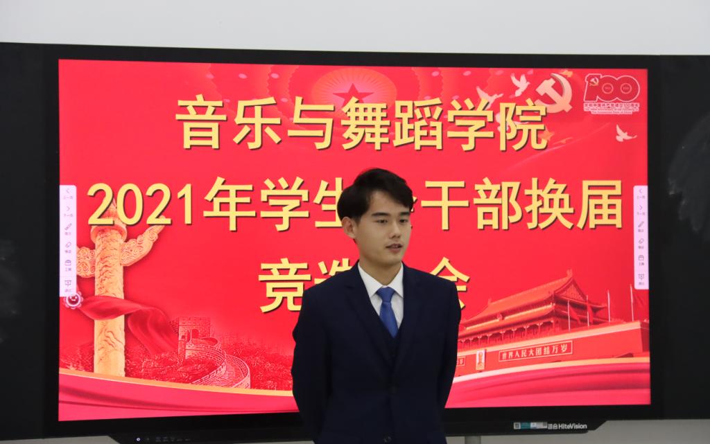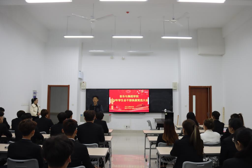10月13日下午,jdb电子游戏官方网站于德艺楼7109举行2021届学生会与文明自律会换届竞选大会,院党政领导及各辅导员参与评审。