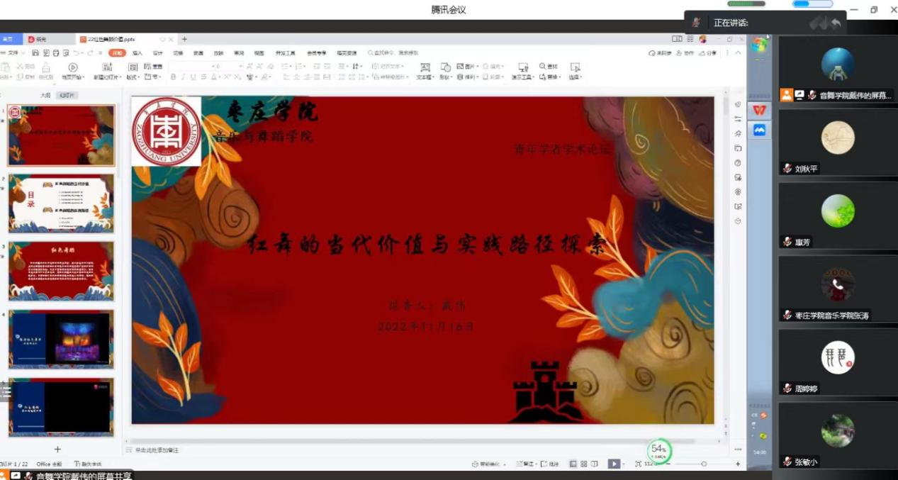 11月16日jdb电子游戏官方网站青年学者学术论坛第三场《红舞的当代价值与实践路径探索》通过线上腾讯会议展开。此次讲座由jdb电子游戏官方网站戴伟博士主讲,全体教师和部分学生代表参加。