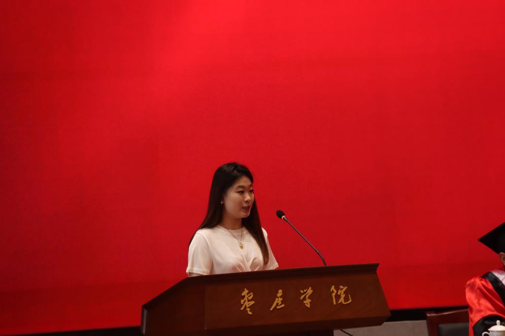 典礼在庄严的国歌声中拉开帷幕,毕业生代表李尚迅带领全体毕业生宣誓,誓言铿锵有力,久久回荡,将对母校的不舍、对未来的期望、对党和人民的忠诚融入其中,带着学院领导老师们的嘱托,奔赴未来。